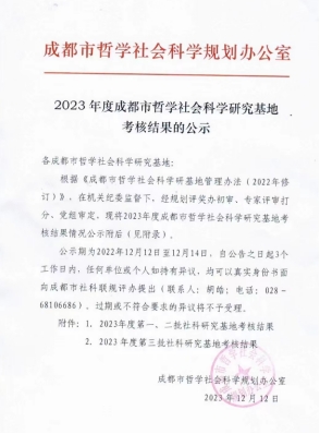 12月12日下午,成都市哲学社会科学规划办公室考核总结会在稳步推荐中顺利召开,成都绿色低碳发展研究基地,在成都市社科联下属37个研究基地中获得A类评价,取得并列第一名的殊荣。