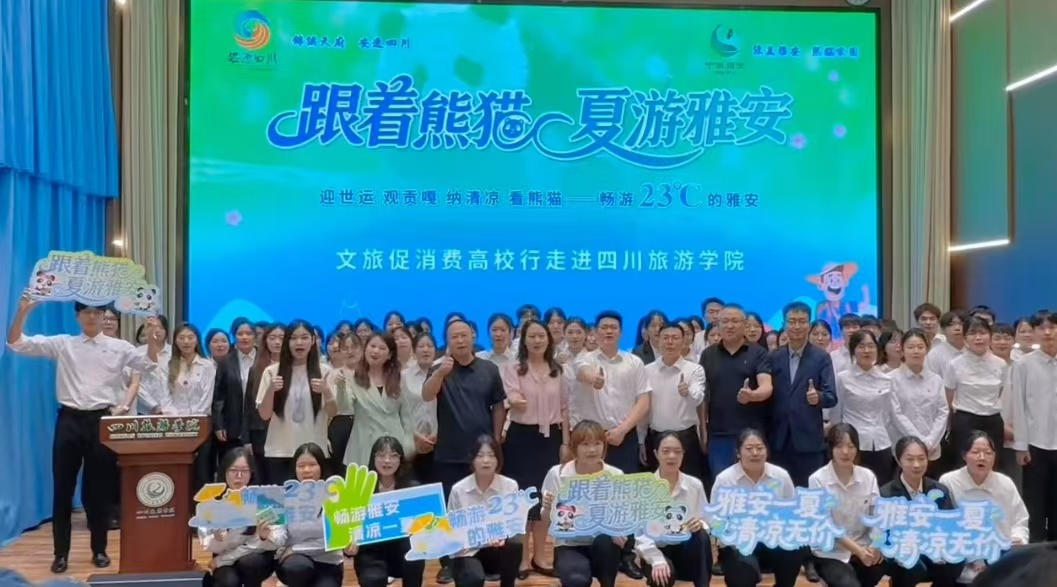 川旅新闻网讯(通讯员 杜江红 彭傲寒 岳阳)6月24日,雅安市文化广播电视体育和旅游局、雅安市商务局、雅安文旅集团携手我校旅游文化产业学院,于学术报告厅成功举办“跟着熊猫夏游雅安”文旅促消费高校行—万象城平台主题推介会。雅安市文化广播电视体育和旅游局副局长杨献文,旅游文化产业学院相关负责人及200余名师生参加推介会。