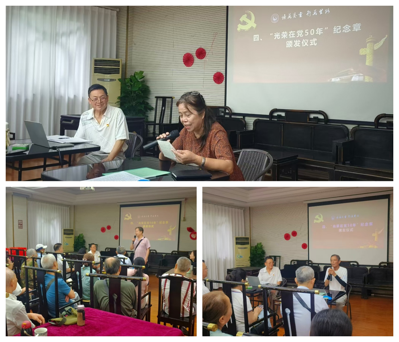 活动同时举行了“光荣在党50年”老党员座谈会,荣获“光荣在党50年”纪念章的戴必赋、崔巍、周光复三位老党员深情回顾了入党以来的心路历程,抒发了对党的感激与忠诚之情,在交流发言中表示,将增强“四个意识”、坚定“四个自信”、做到“两个维护”,继续听党话、感党恩、跟党走,充分发挥政治优势、经验优势、威望优势,永葆初心本色,一如既往地为学校事业发展贡献自己的绵薄之力。活动对2024年度优秀共产党员进行了表彰,最后,全体党员重温入党誓词,表达了始终不忘初心、牢记使命的共同心声。活动期间还开展了形式多样的交流活动,老同志们兴致勃勃,现场其乐融融。